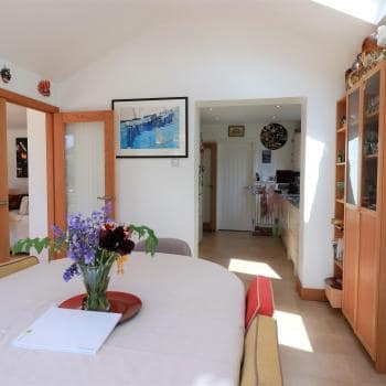 With the inclusion of sliding doors, French doors, a vaulted ceiling, and strategically placed rooflights, the extension flooded the interior with natural light and established a strong connection to the garden, enhancing both functionality and aesthetics.